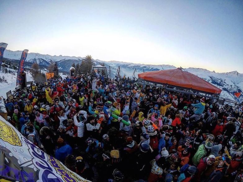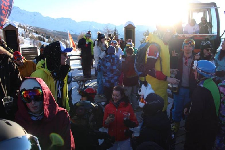 Mes vidury savaitės atradome après-ski barą kalne.. leidžiantis nuo L'Arpette 2413 m viršūnės, žemyn link Les Arcs 1800, pračiuožus pro snowpark'ą ... realiai jis taip ir vadinas "L'Arpette bar". Britai buvo atsivežę savo DJ'ų, kuris grodavo kasdien, iš keltuvo padarytoje DJ'aus būdelėje. Visi atčiuoždavo apsirengę kostiumais, išsidažę veidus ir linksmai nusiteikę, šokiai ant stalų ir muzika prasidėdavo apie 14:30 val ir tęsdavosi iki kol pradėdavo temti .. tai realiai apie 17-18 valandą išjungdavo muziką, nes dar žmonėms kažkaip parčiuožt žemyn trasom reikia. Trasos buvo apšviestos, tačiau keltuvai jau nebedirbdavo. Juokingai atrodė, kai apie 6 valandą nuo kalno pasileisdavo svirduliuojanti banda įvairiausiais gyvūnėliais ir personažais persirengusių slidininkų ir snieglentininkų ... pikachu, vienaragiai, tigrai, karvės, viščiukai, briedžiai, fėjos ir kiti "padarėliai" užplūsdavo trasas.